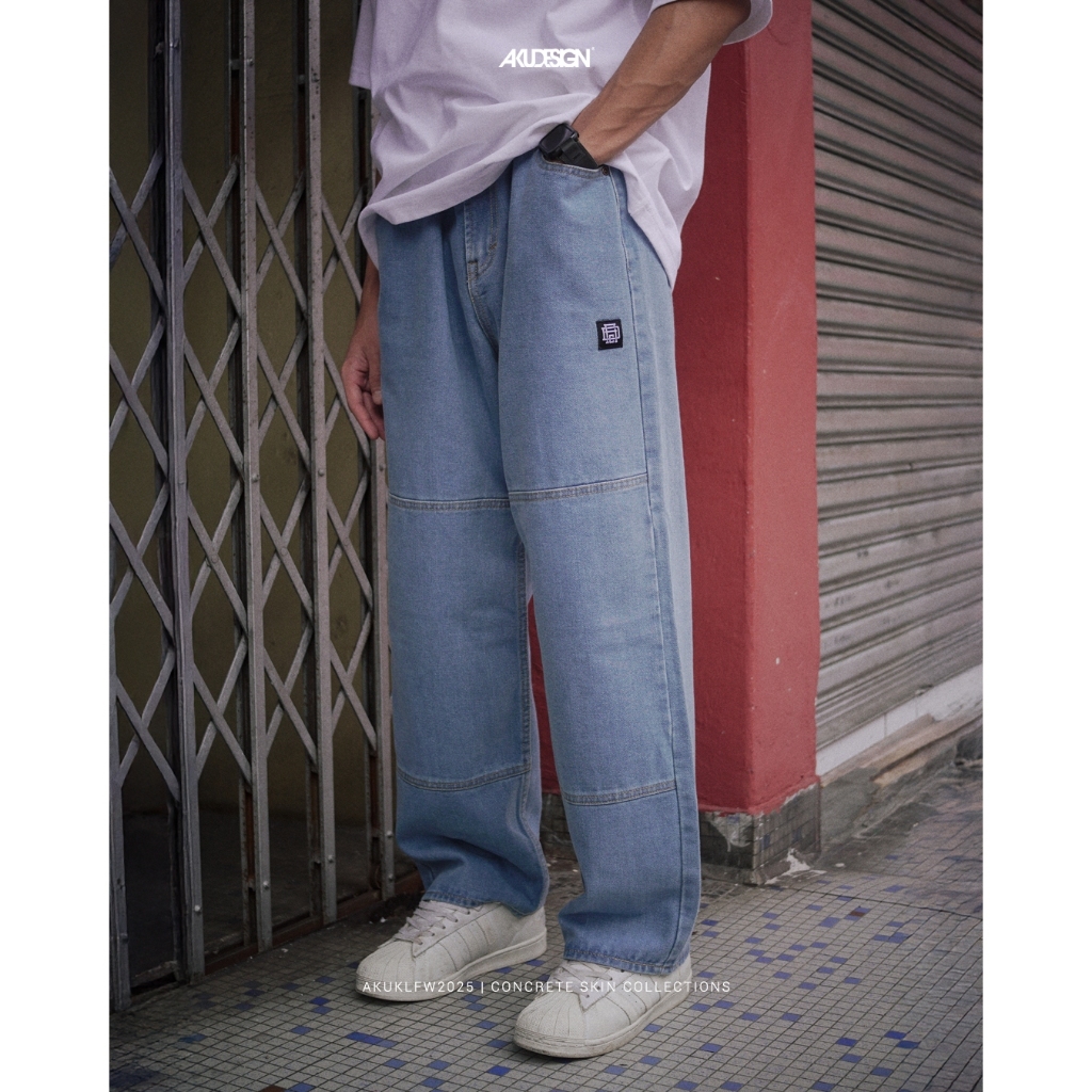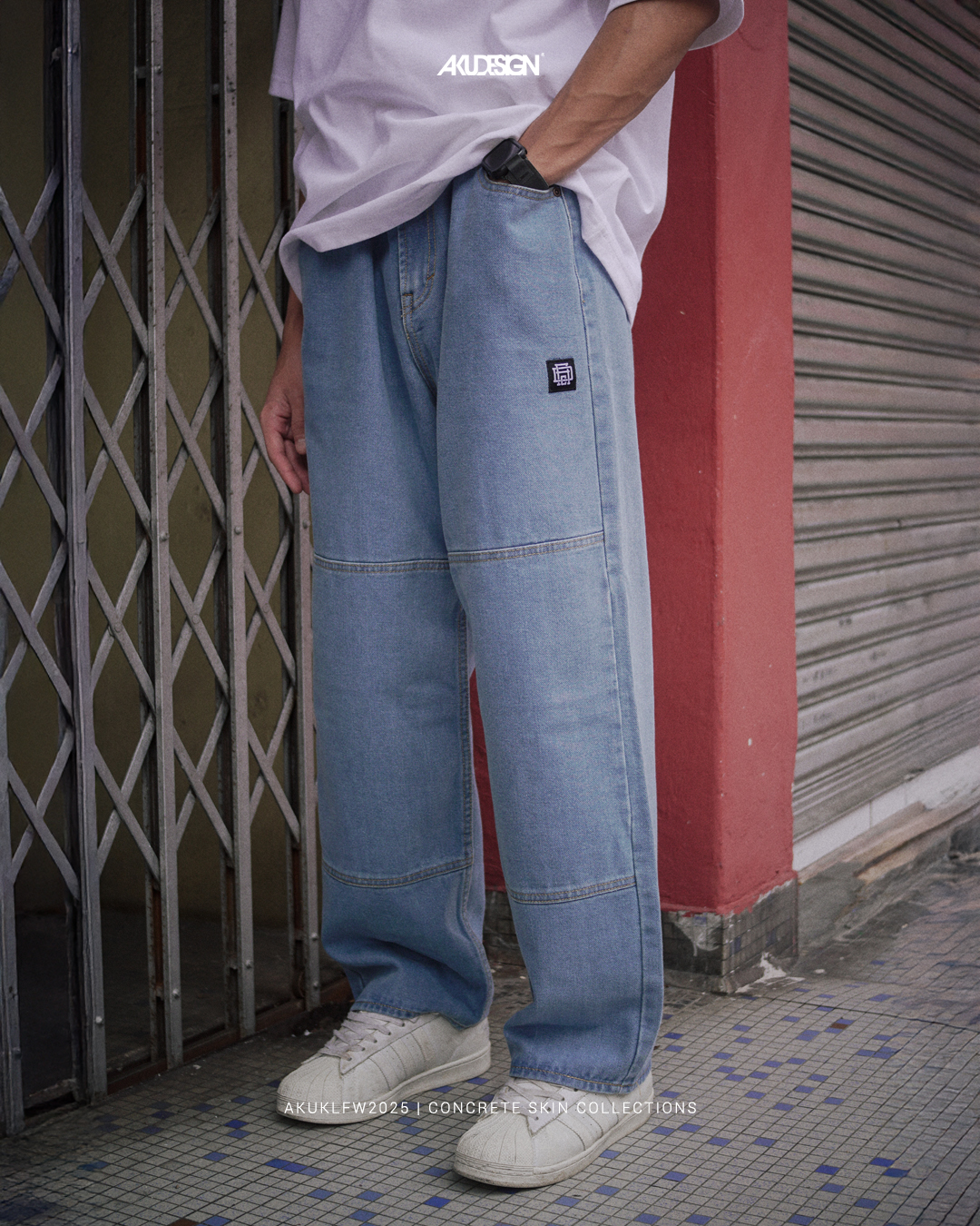 Akudesign Fragments Baggy Pants, specially crafted to complete and elevate your daily style. Made from high-quality light blue denim and black with a celeb wash finish, designed in a relaxed baggy cut for all day comfort.