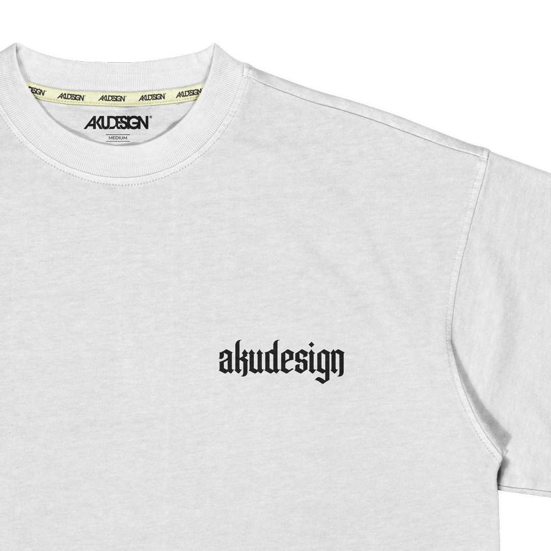 The front features the Akudesign typography wordplay logo, clean and direct, representing brand identity in its rawest form. The back carries the full statement graphic: “The School of Hard Knocks, Only The Strong Will Survive” paired with the fence emblem visual, symbolising resilience, discipline, and survival mentality within street culture.