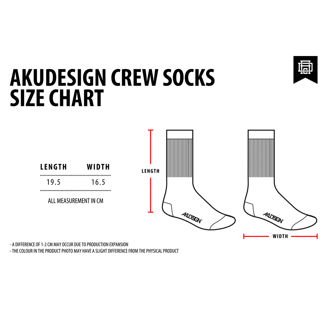 Designed with a clean white base, the standout feature is the bold Akudesign wording wrapped around the mid calf in a blue tone, making sure your statement shows whether you’re rocking shorts, cargos, or stacked denim.