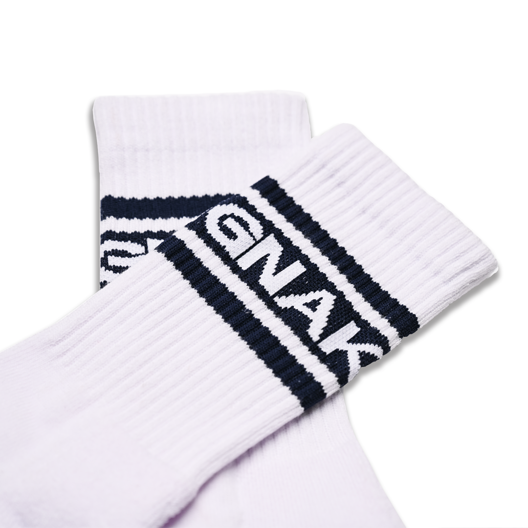 Level up the details. The Akudesign Stripe Navy White Crew Socks are built to complete the fit from the ground up. Crafted from high quality cotton spandex, they deliver the perfect balance of comfort, stretch, and everyday durability.
