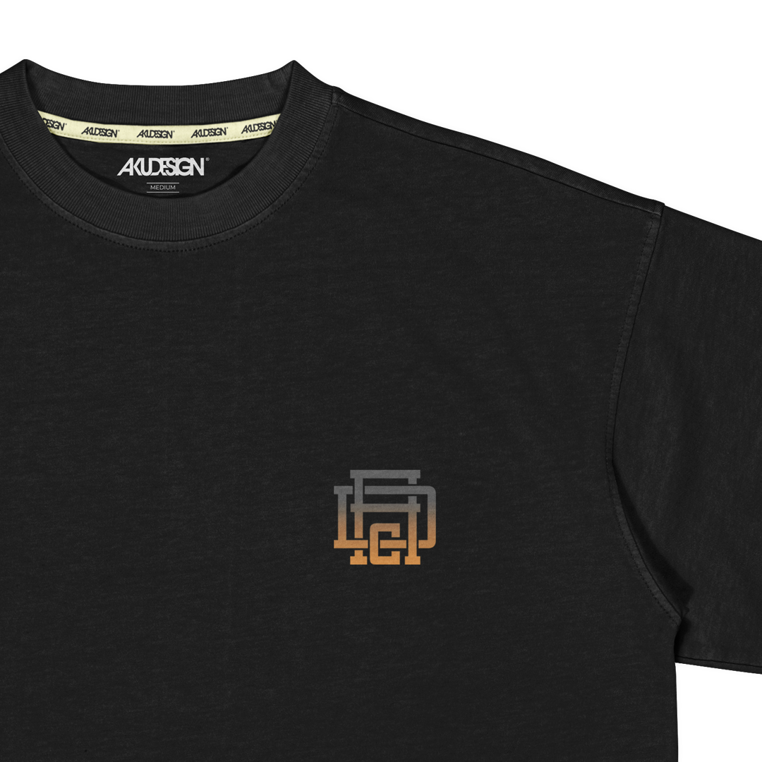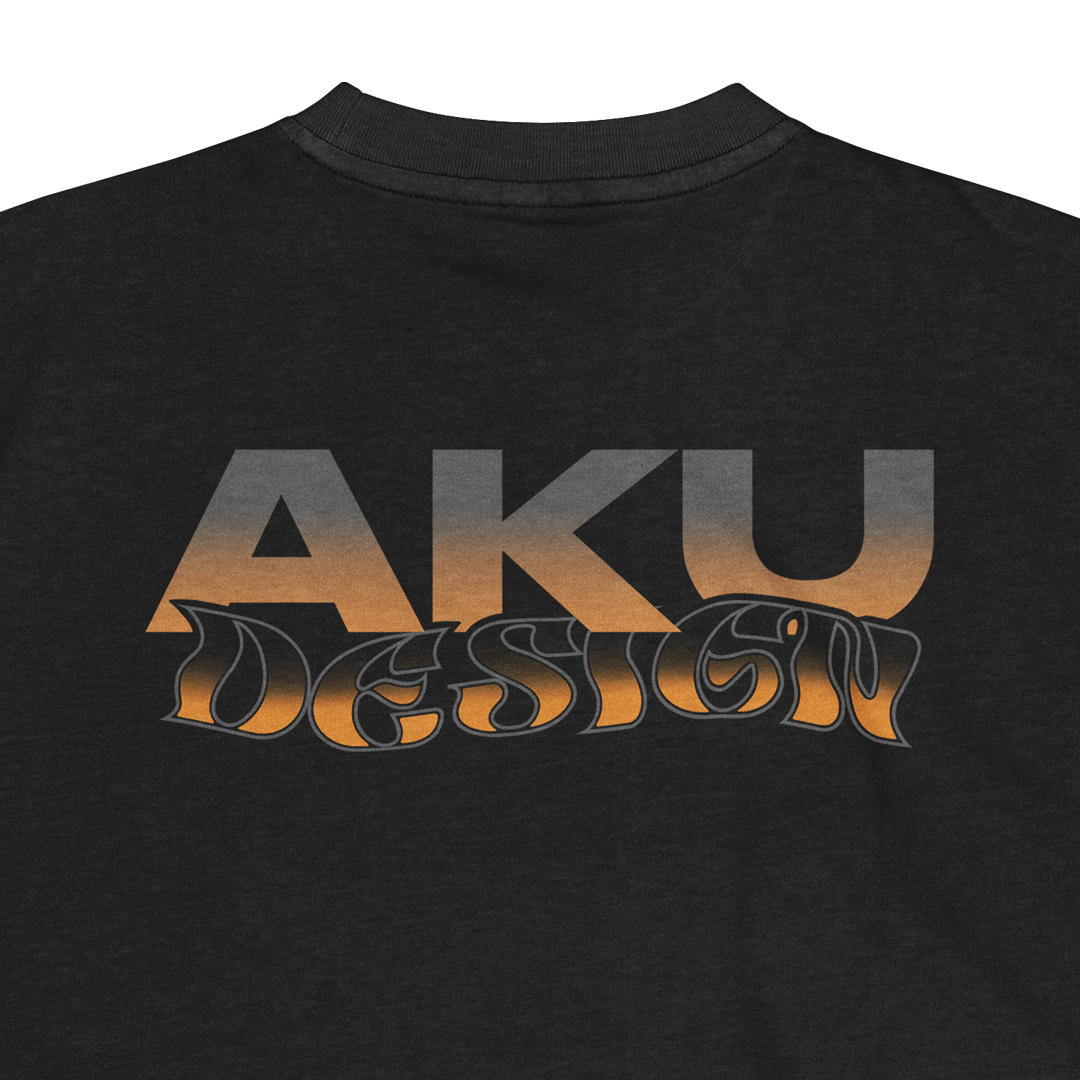 The front features the Akudesign Mono logo, clean, sharp, and straight to the point. Minimal presence, maximum identity. Flip to the back and it elevates. The Akudesign typography wordplay logo takes over in a monochrome gradient composition, infused with a subtle orange fade effect that adds depth and heat against the black base. Controlled, but eye catching. A balance between minimalism and visual punch.