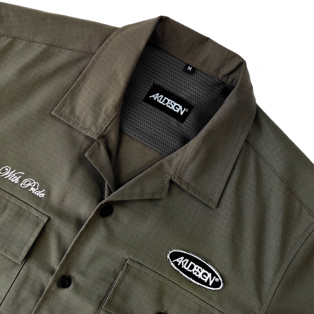 Kingsley Work Shirt, made from high quality ripstop material. 2 Flip button pockets in total at the front side, together with Akudesign tagline 'Wear With Pride' wording & Akudesign Emblem Logo embroidered on right and left side upper pocket. Other detailing such as Akudesign Emblem Woven Tag inside and backside area, Akudesign Mono Flip Woven Tag at sleeve, and Akudesign Product Label inside. Comes in 3 colour, Black, Grey & Olive. This Work Shirt uses regular cutting, made to accompany your daily outfit and routine. Try it out, go wild with your style, and always Wear With Pride with Akudesign.